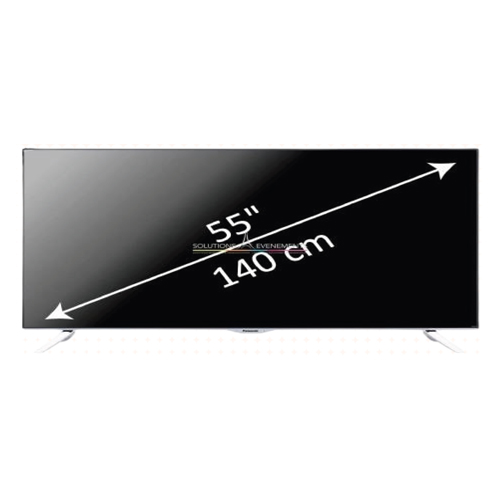 Écran de 55 pouces avec pied, offrant une résolution haute définition et un design moderne. Idéal pour salons, conférences et espaces d’exposition.