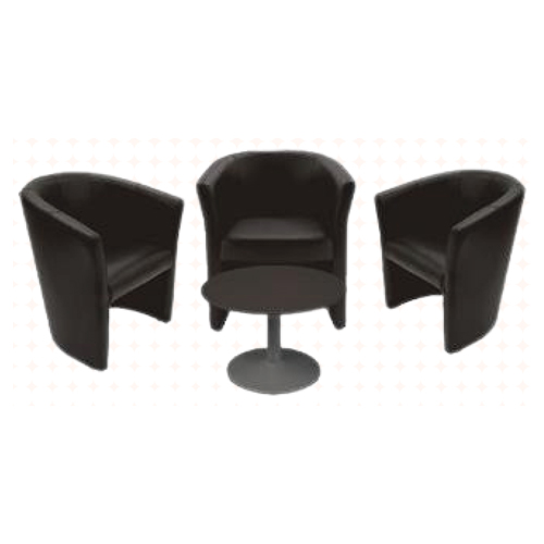 Ensemble composé de trois fauteuils et d’une table basse au design moderne et élégant. Idéal pour salons, espaces lounge ou salles d’attente.